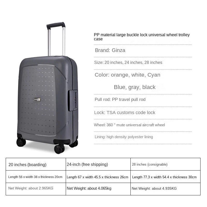 20"24"28" Inch Trolley Case 100% PP Anti-scraping Rolling Luggage Spinner UltraLight Travel Suitcase Hardside Luggage
