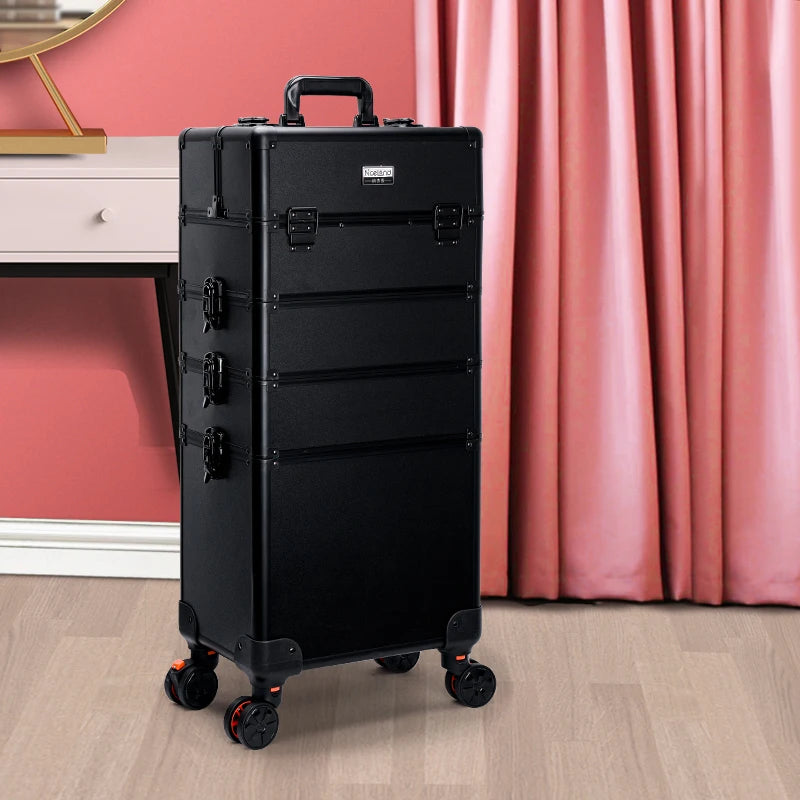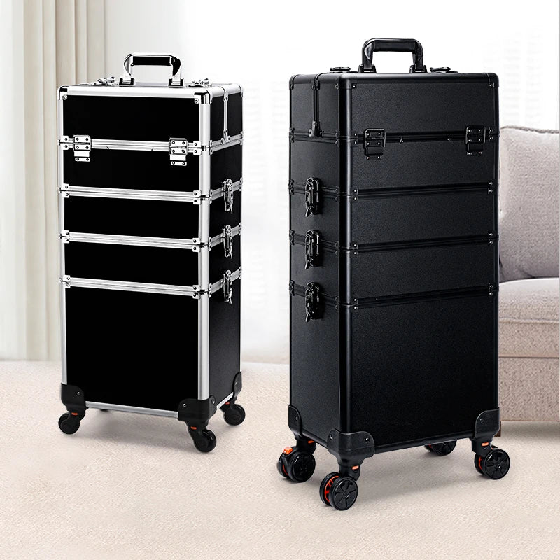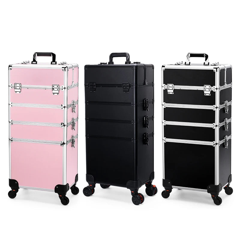 4 in 1 Aluminum Rolling Makeup Case On Wheels Cosmetic Storage Organizer Travel Train Case Divider With Labor-Saving Wheel