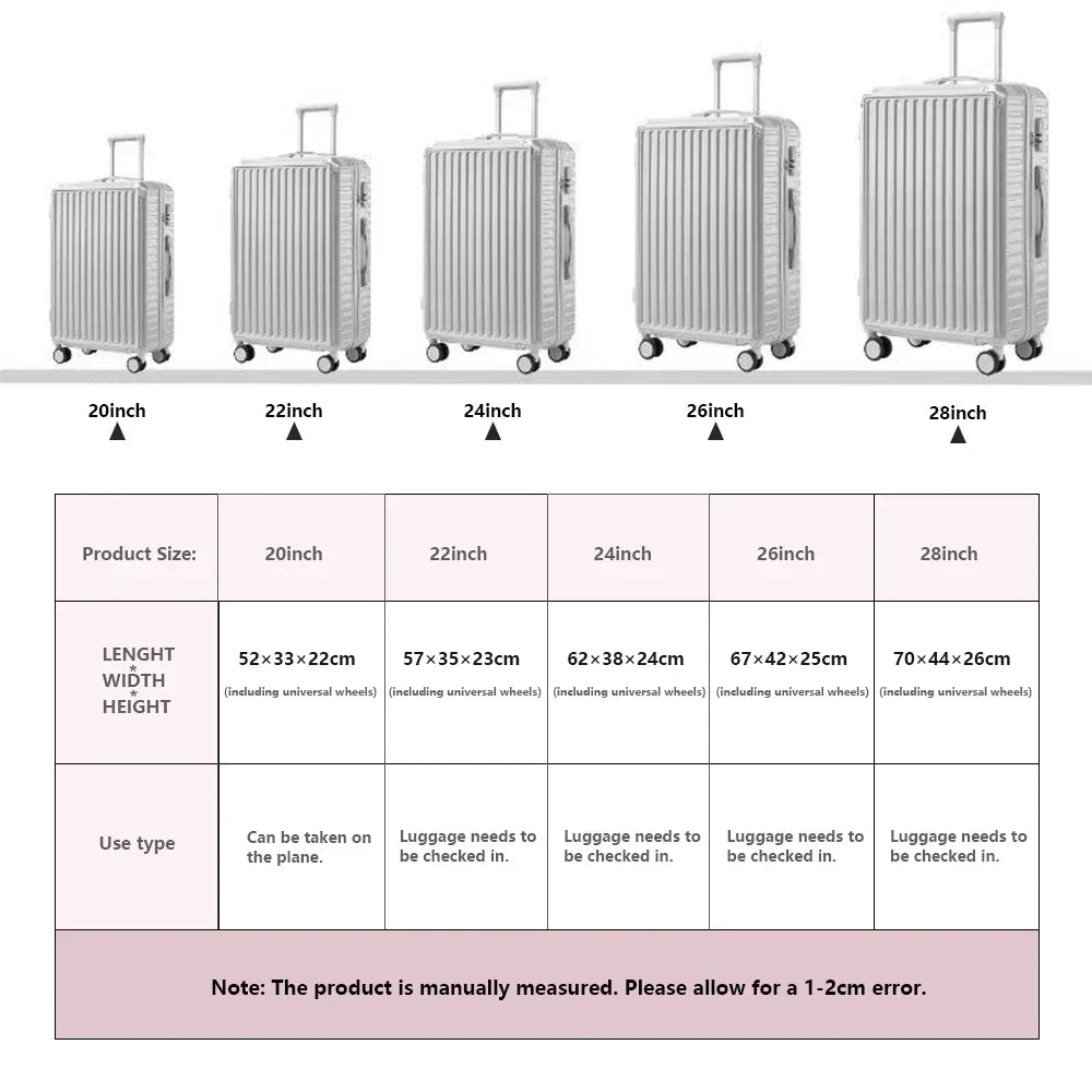 Aluminum Frame Travel Suitcase Luggage Carrier 20 24 28 Inch Trolley Case Luggage Carry-On Cabin Suitcases travel