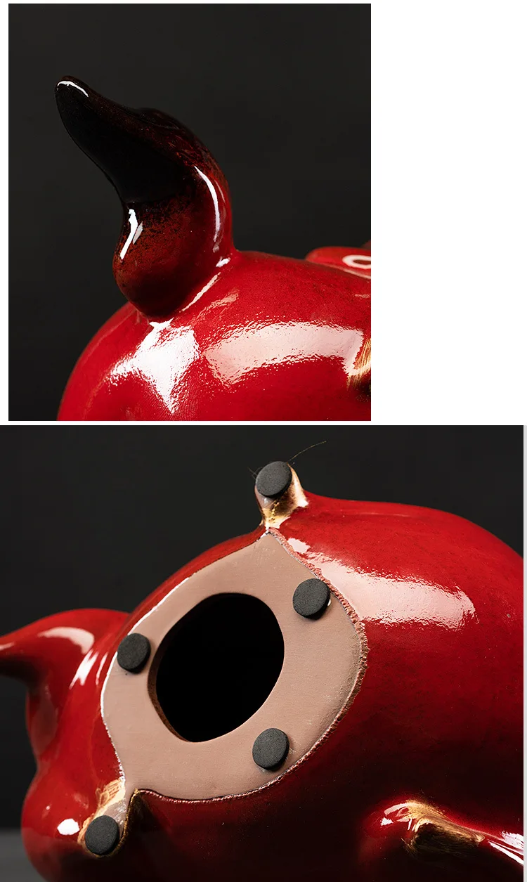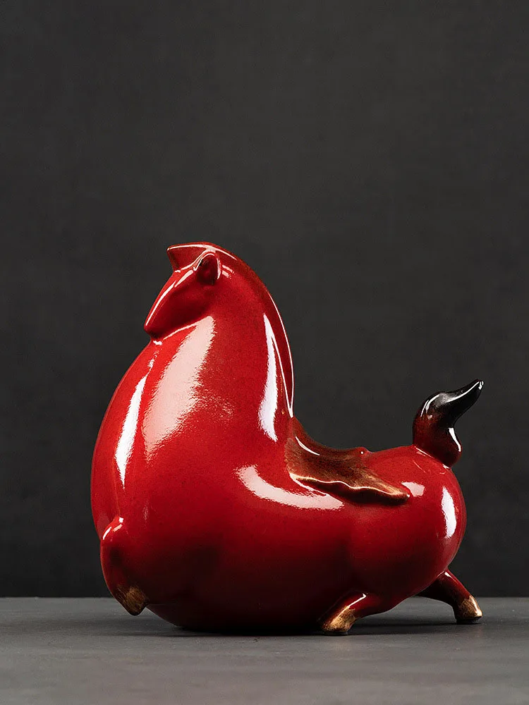 Creative Fat Horse Ceramic Statue, Home Decoration, Lucky Red Tang Horse Sculpture, Living Room Decoration, Retro Craft