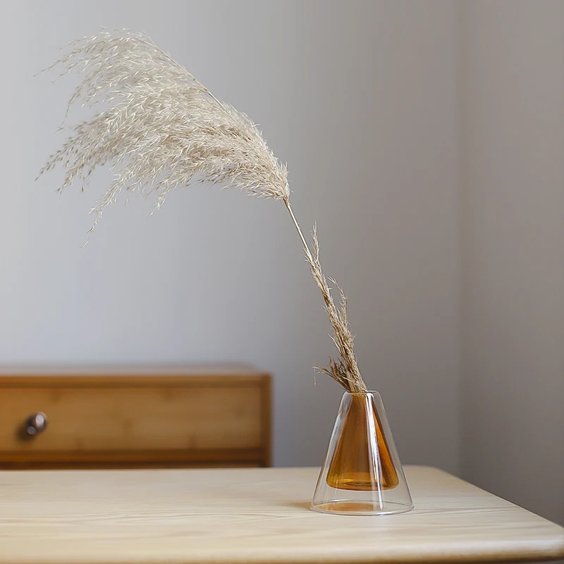 Decorative Double Wall Borosilicate Flower Vase Ins Hot Popular Cylinder Hydroponic Clear Murano Glass Vase
