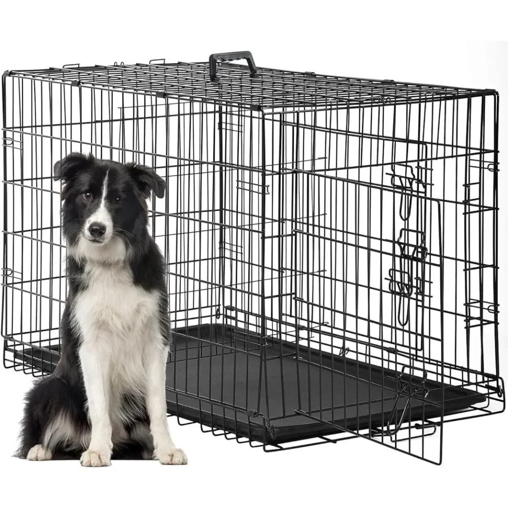 Dog Crate Cage Pet for Large s Folding Metal Double Door W/Divider Panel