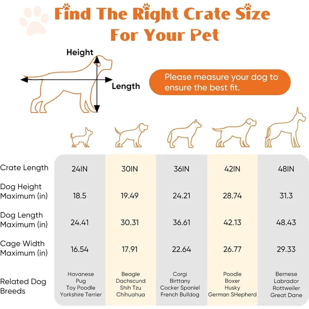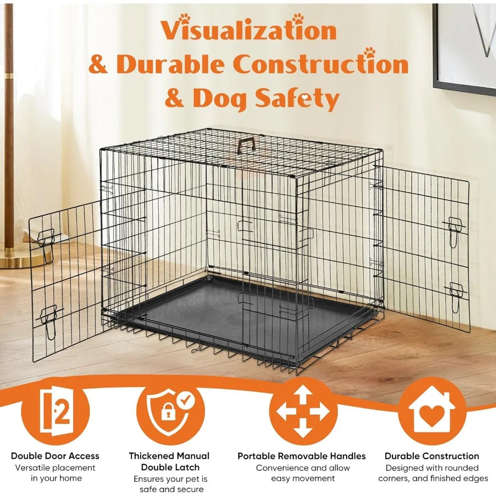 - ENHANCED SECURITY: With rounded edges, smooth rounded corners and matching accessories, our dog crates prioritize safety. Thick metal mesh and double doors with 2 heavy-duty sliding bolt locks not only prevent your dog from escaping, but also provide optimal protection for your pet;