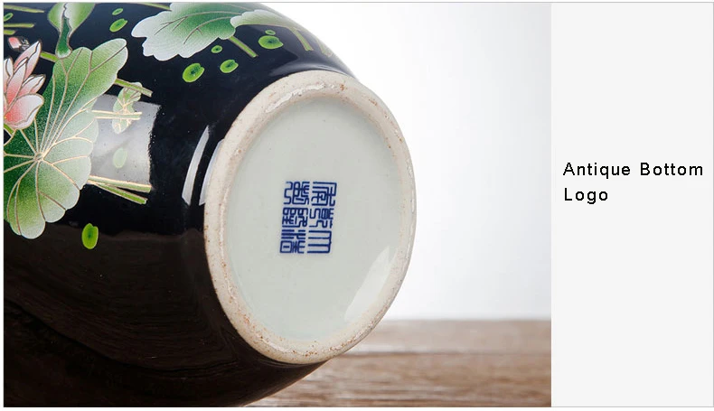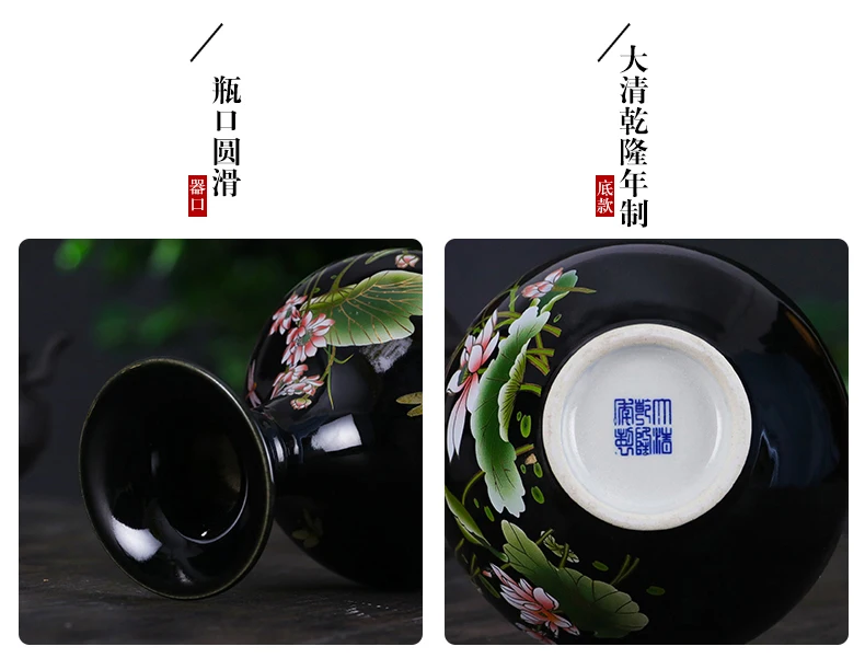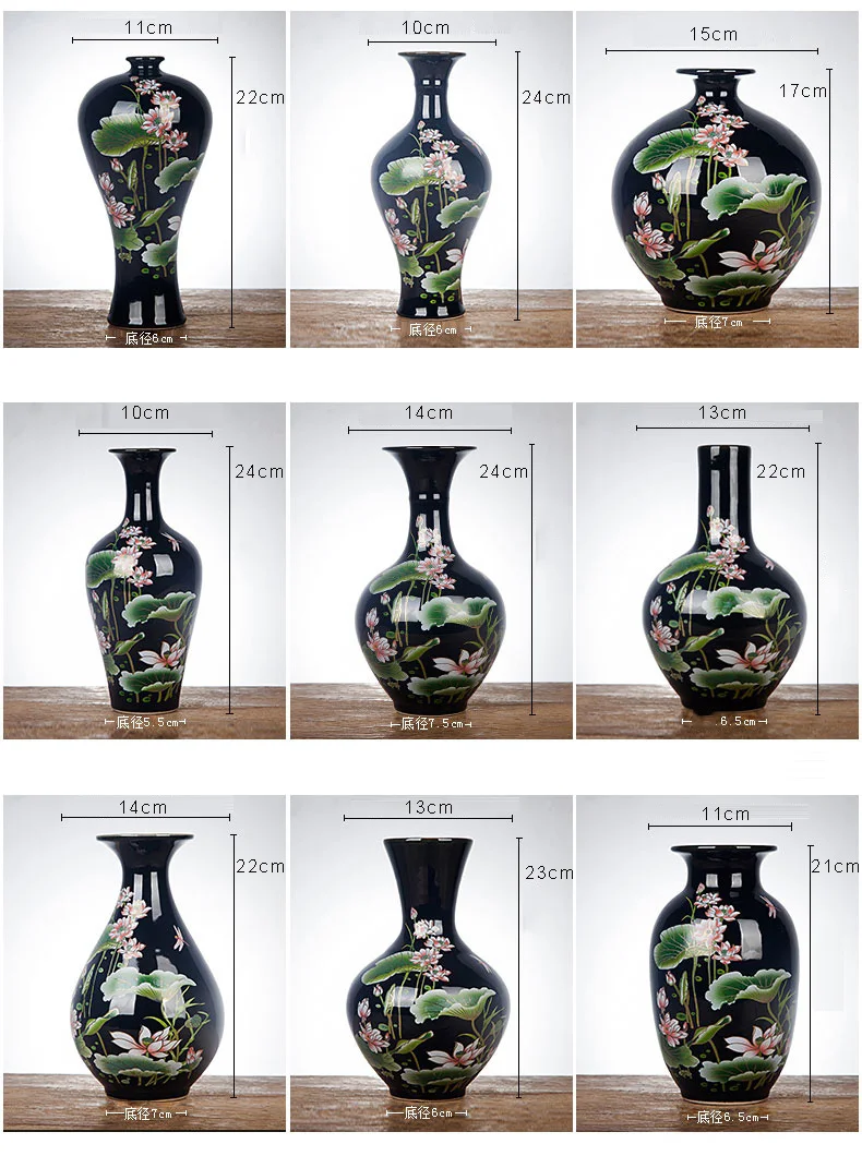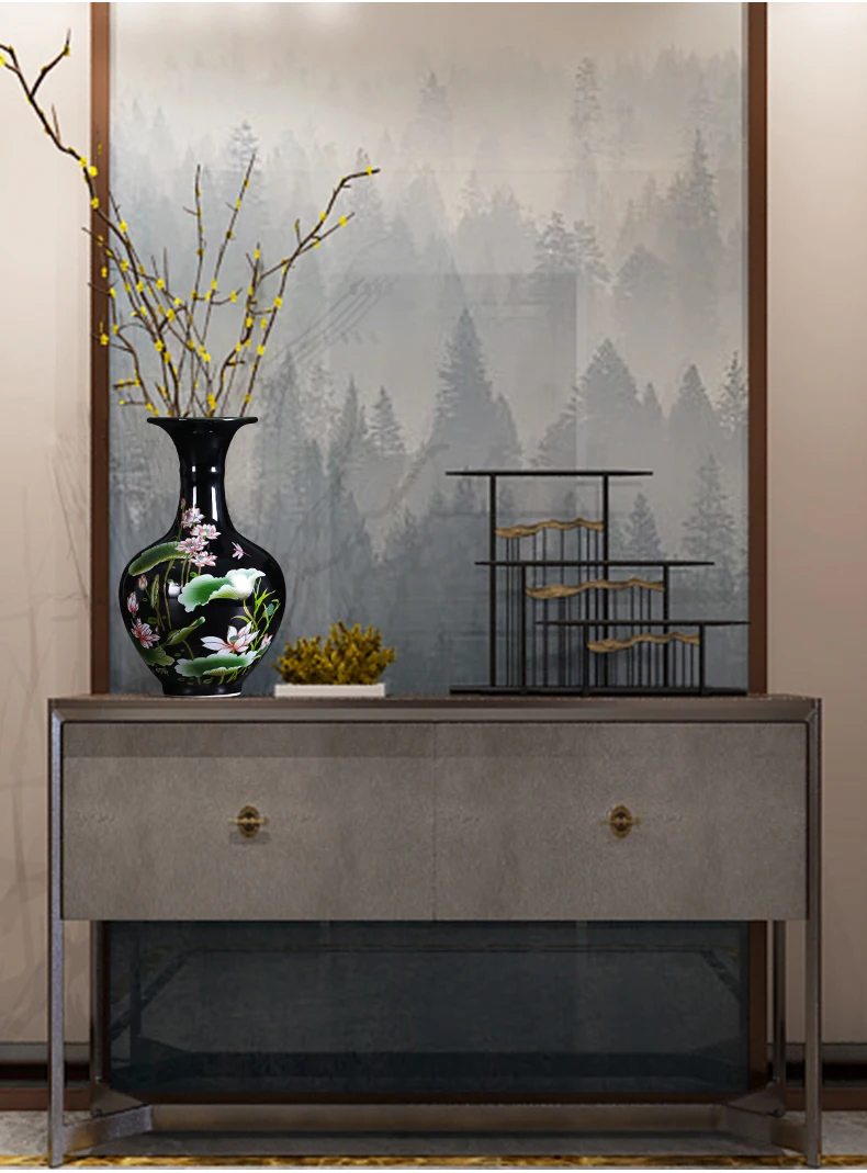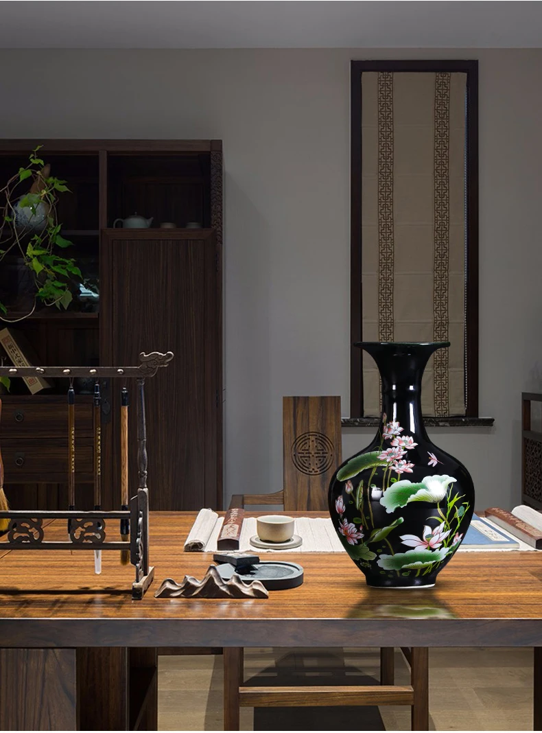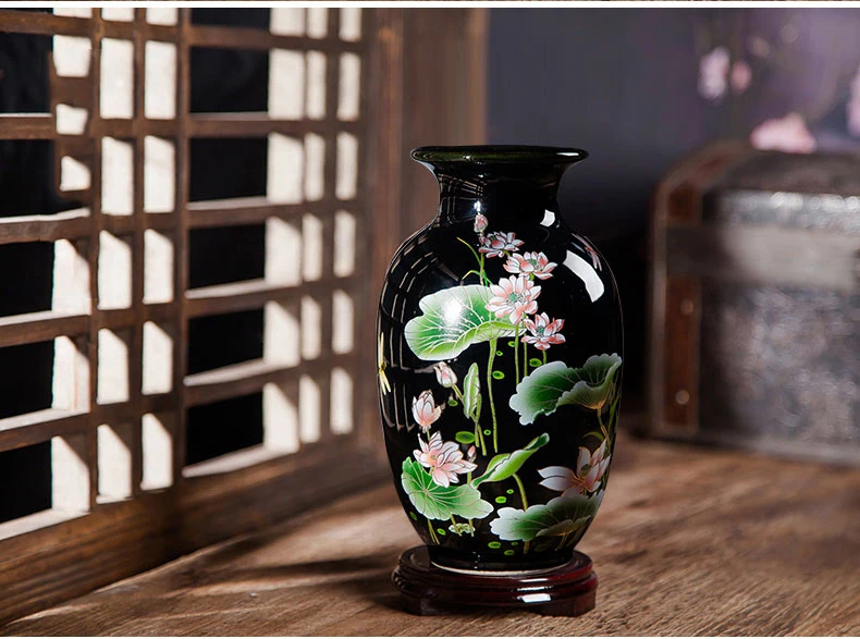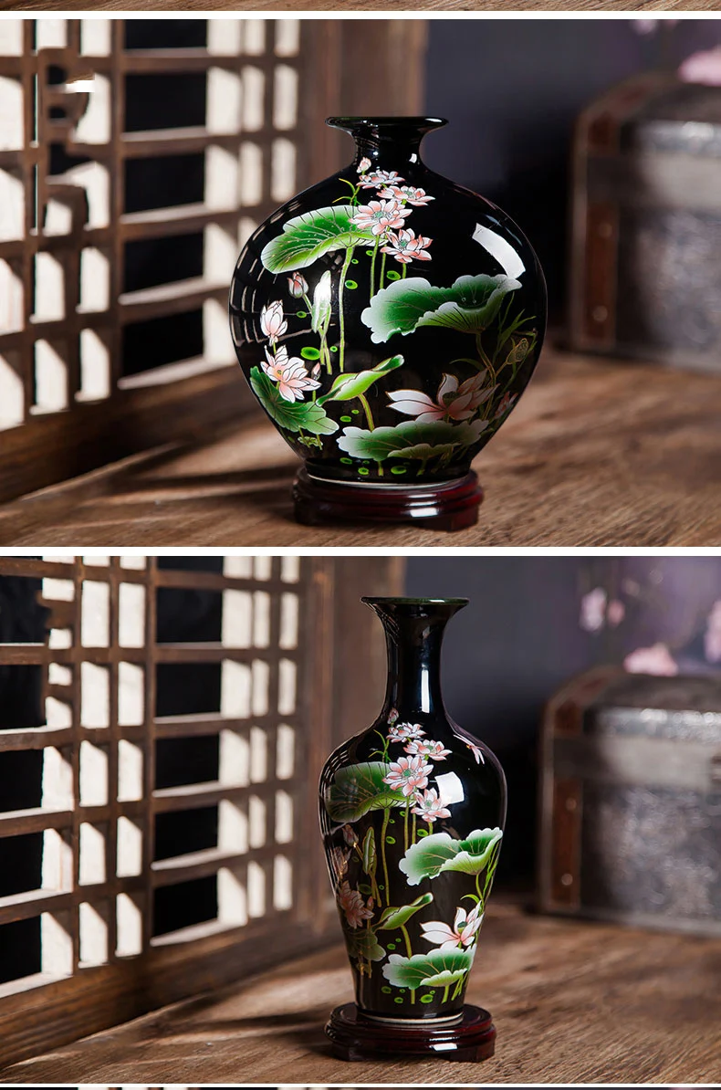 Jingdezhen Sharply Glaze Black Ceramic Vase Lotus Pattern For Modern Home Sitting Room Adornment