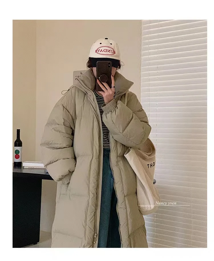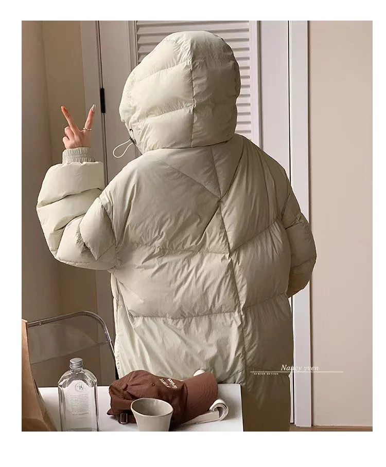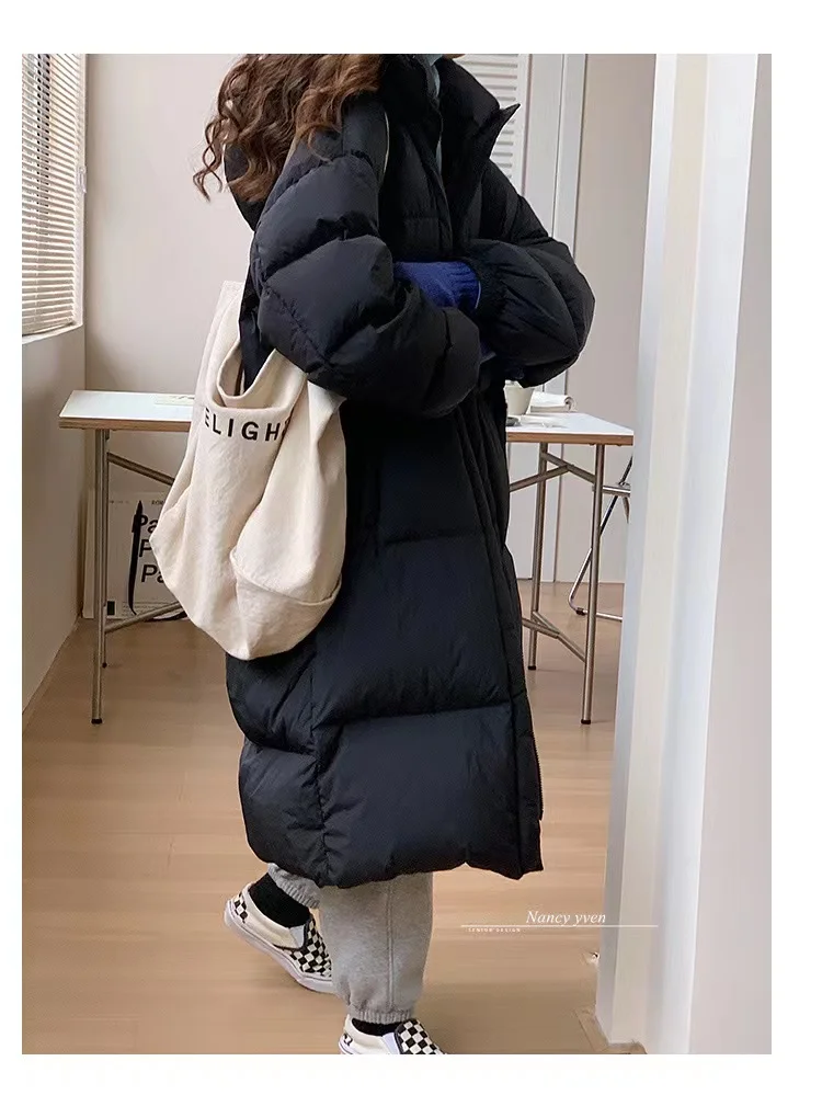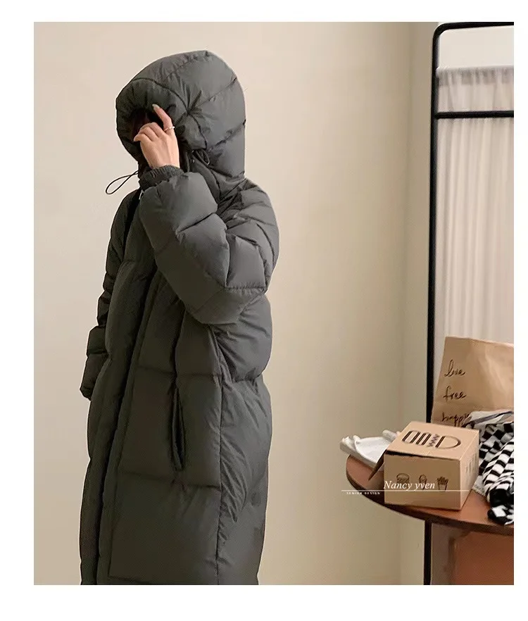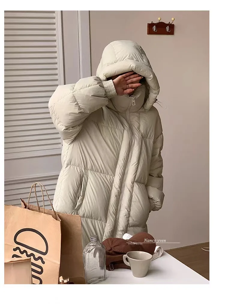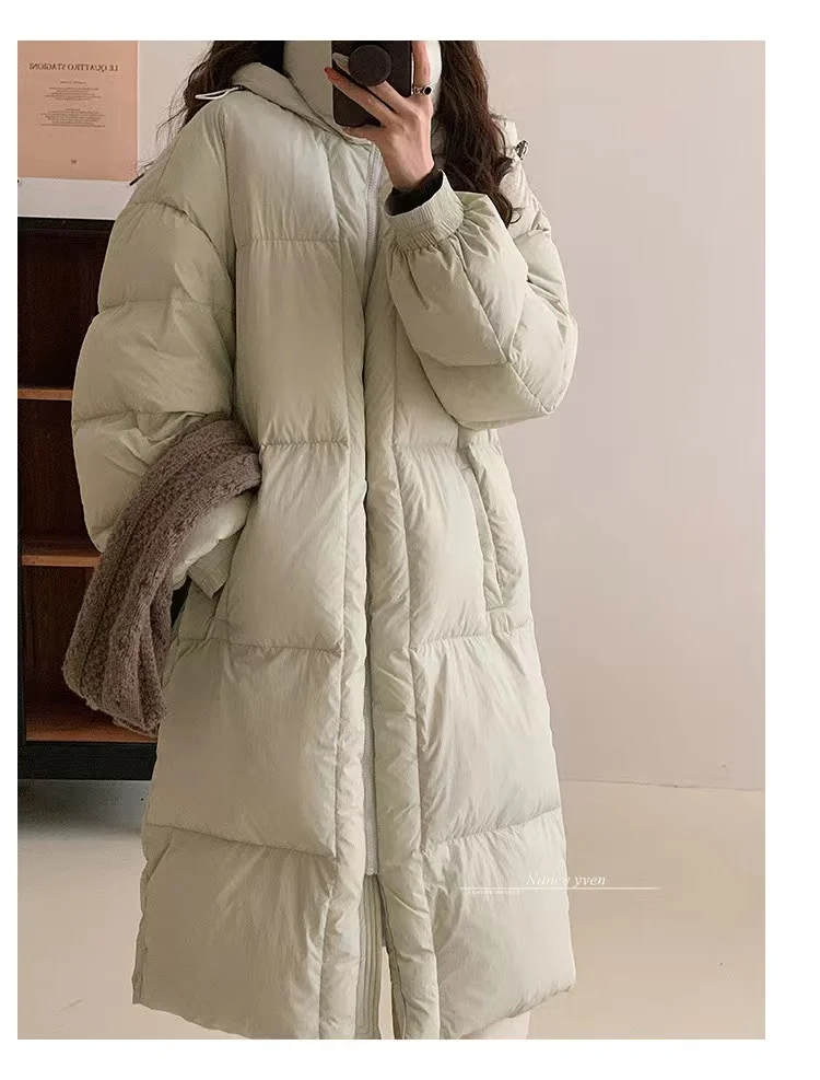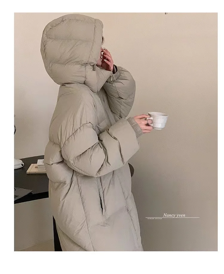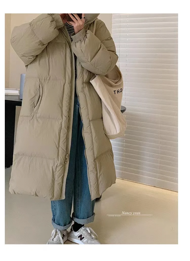 Khaki Down Jacket Women Hooded Coat Keep Thickening Warm Fashion Streetwear Duck Down Feather Female 2024 Winter Long Outwear