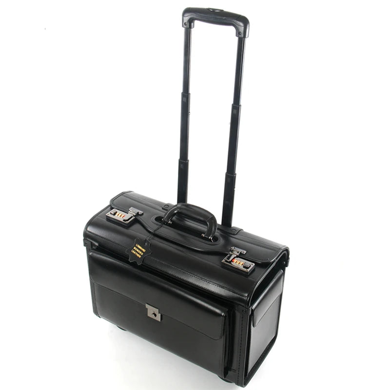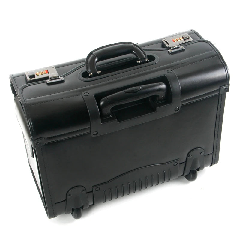 New Retro Genuine Leather pilot Rolling Luggage Cabin Airline stewardess Travel Bag on Wheels Business Trolley Suitcases hangbag