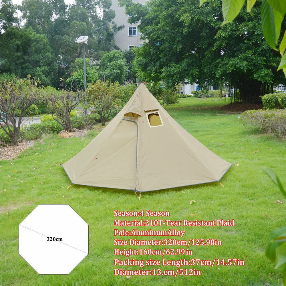 Ultralight Camping Teepee 3-4Person Big Pyramid Tent Backpacking Tent with Chimney Hole Awnings Shelter for Birdwatching Cooking